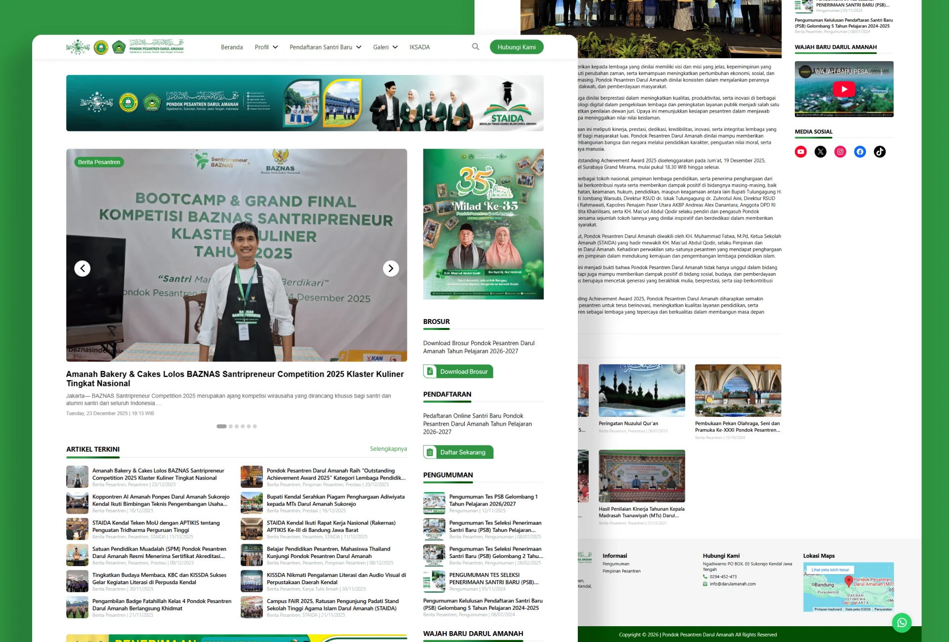This website was developed for Pondok Pesantren Darul Amanah, an Islamic educational institution focused on character building, academic excellence, and student development. The platform serves as a central information hub for students, parents, alumni, and the wider community.
